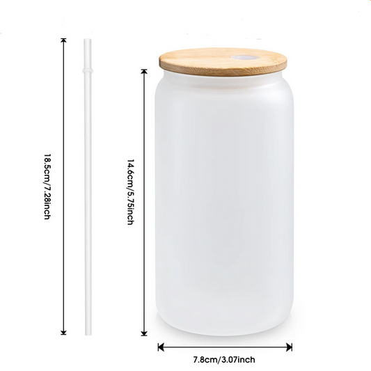 16/50Pack 16 oz Sublimation Beer Can Glass Blanks with Bamboo Lid and Straw, 16oz Frosted Sublimation Tumbler Blanks