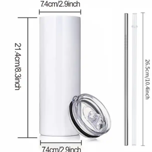 Case of 25Pack 20 oz Sublimation Tumblers Blank Straight Skinny bulk for Heat transfer, Double Wall Insulated Tumbler with Lids