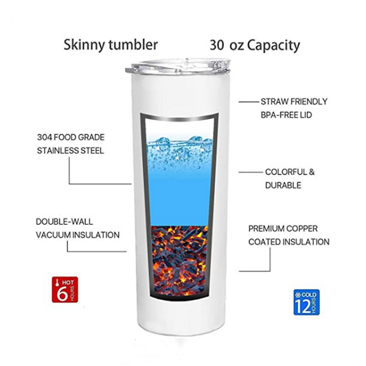 30oz Case (25 UNITS) Sublimation Tumbler Skinny Blank Flat Bottomed, Stainless Steel Double-layer Insulation with Cover, Independent Box