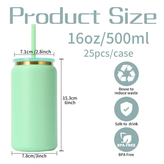 16oz Case 32Unit Gradient Tumbler Glass Single Layer Heat Resistant Borosilicate Cold Color Tumbler With Bamboo Lid And Straw