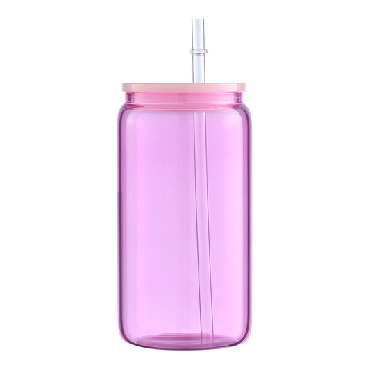 20oz Case (20 UNITS) Sublimation Multi-color Transparent Glass Beer Drum Blanket, Juice Jelly Colored Travel Mug, with Lid and Straw,