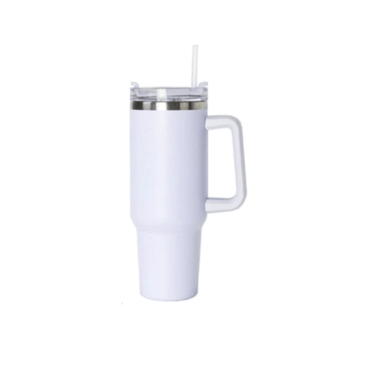 40oz case 25Pack Sublimation Stainless Steel Tumbler Flat Bottomed Cup, Blank Stainless Steel Vacuum Insulated White Travel Glass Cup, with Handle and Straw